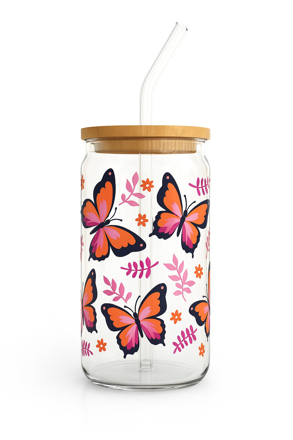 - 500ml glass with lid and glass straw